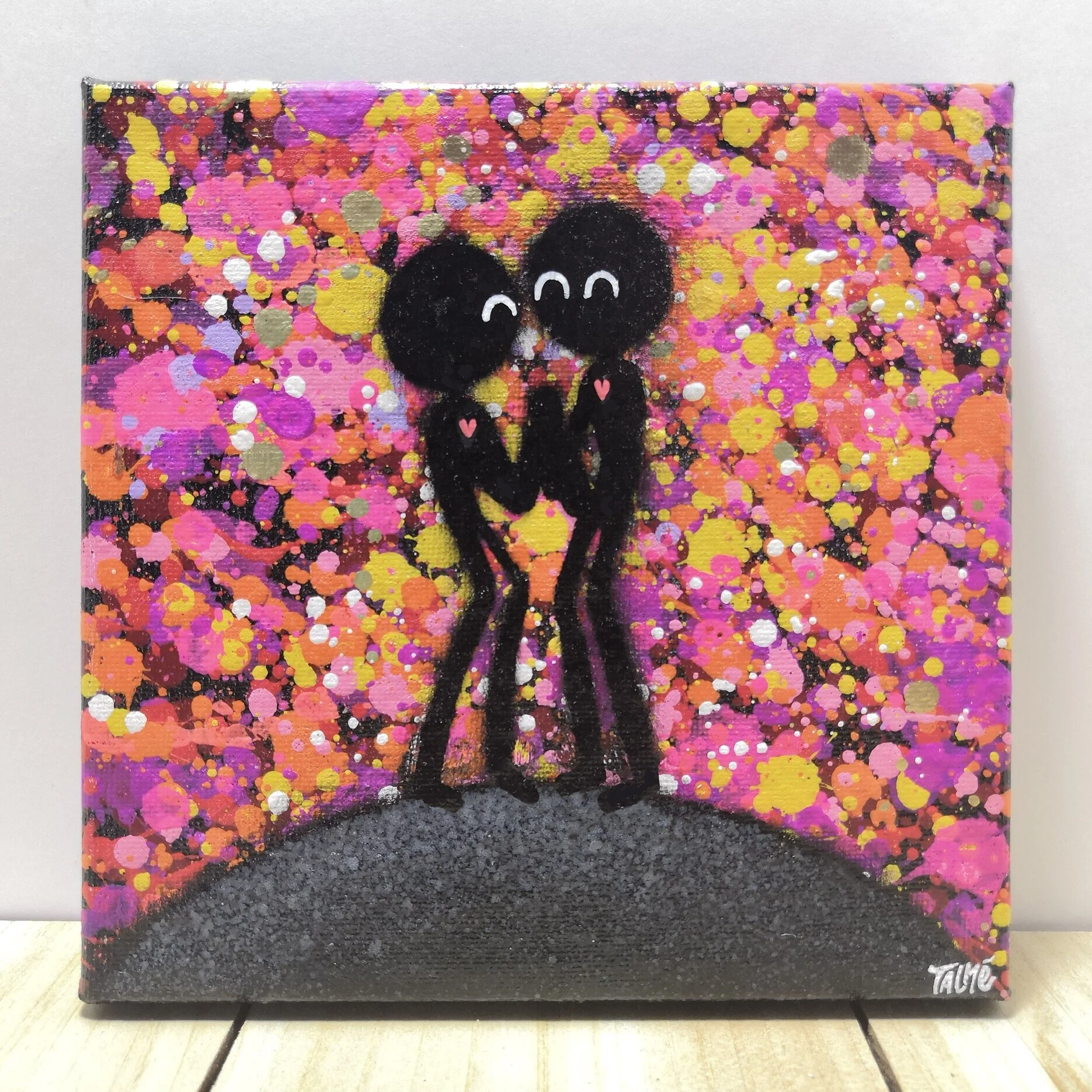 Peinture acrylique réalisée à la bombe, au marqueur et au pochoir sur toile.